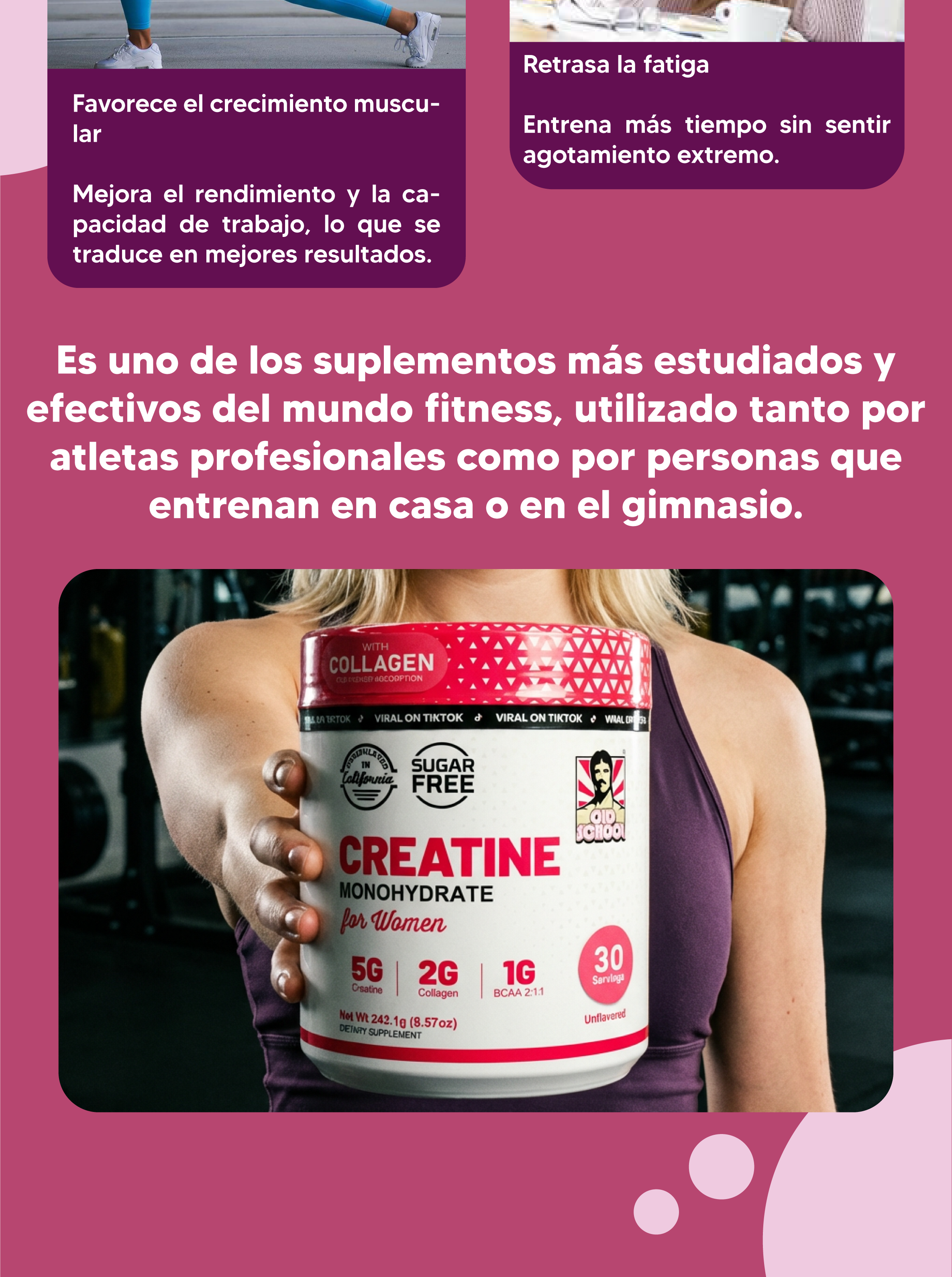 • "Después de los 40 todo cuesta más… pero con esta creatina + colágeno he visto cambios reales. Menos dolor en las articulaciones y mi cara luce más joven. ¡Lo recomiendo totalmente!"