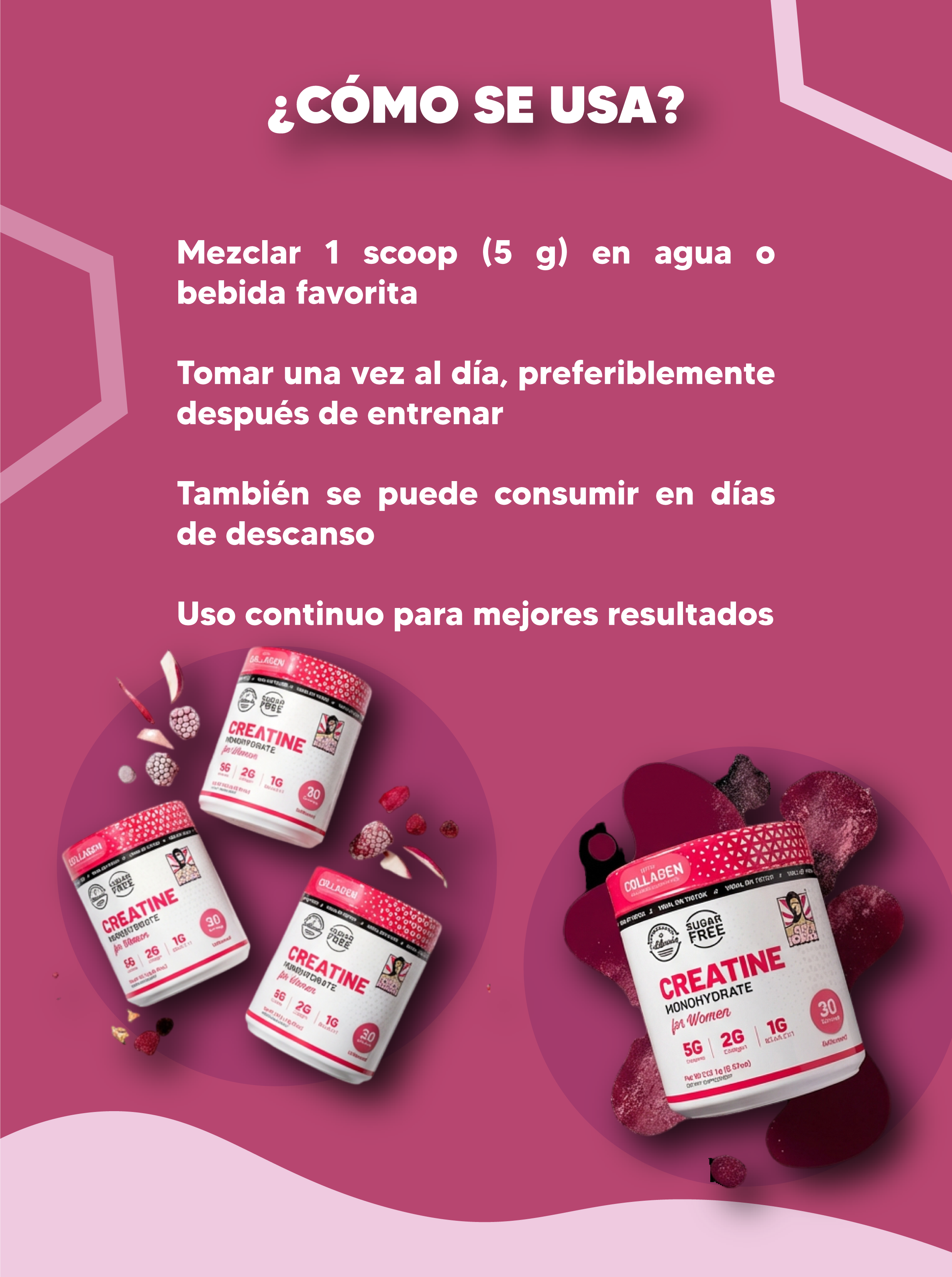 • "Me daba miedo la creatina por los mitos de ‘verse grande’, pero esta fórmula es perfecta. Me siento más fuerte, más definida y mi piel lo agradece. ¡No me hinchó nada!"