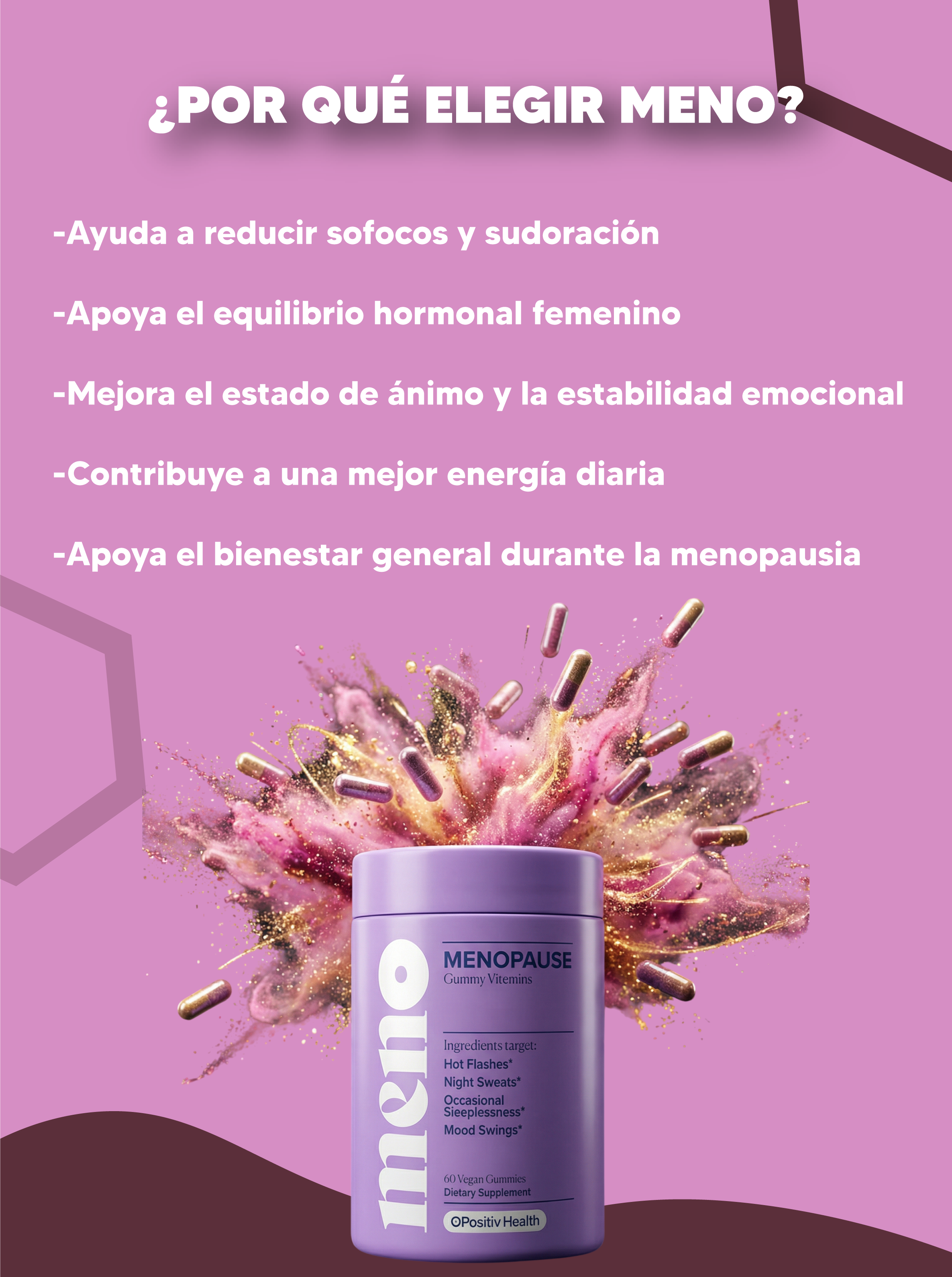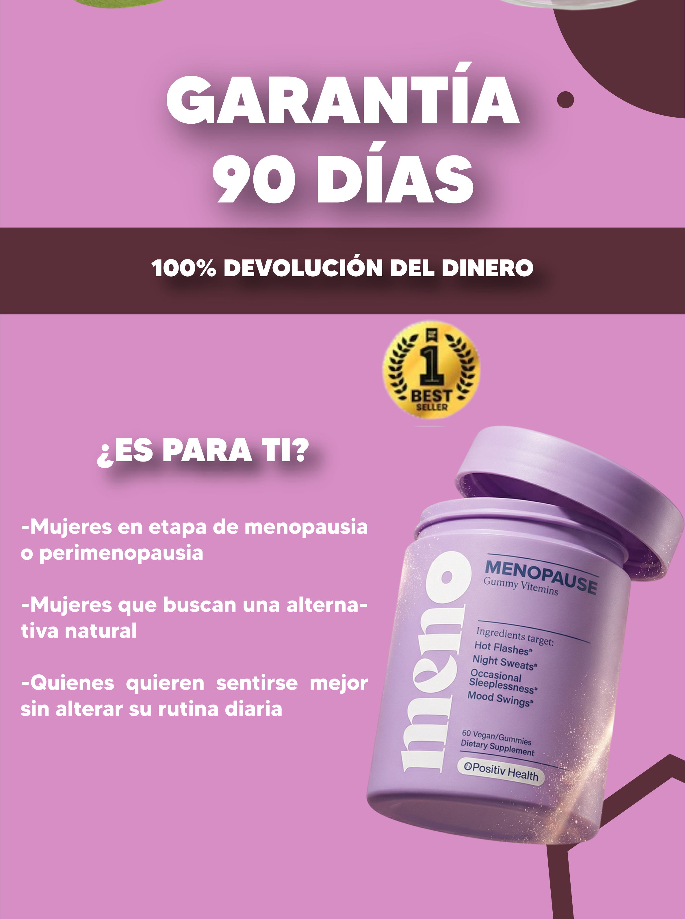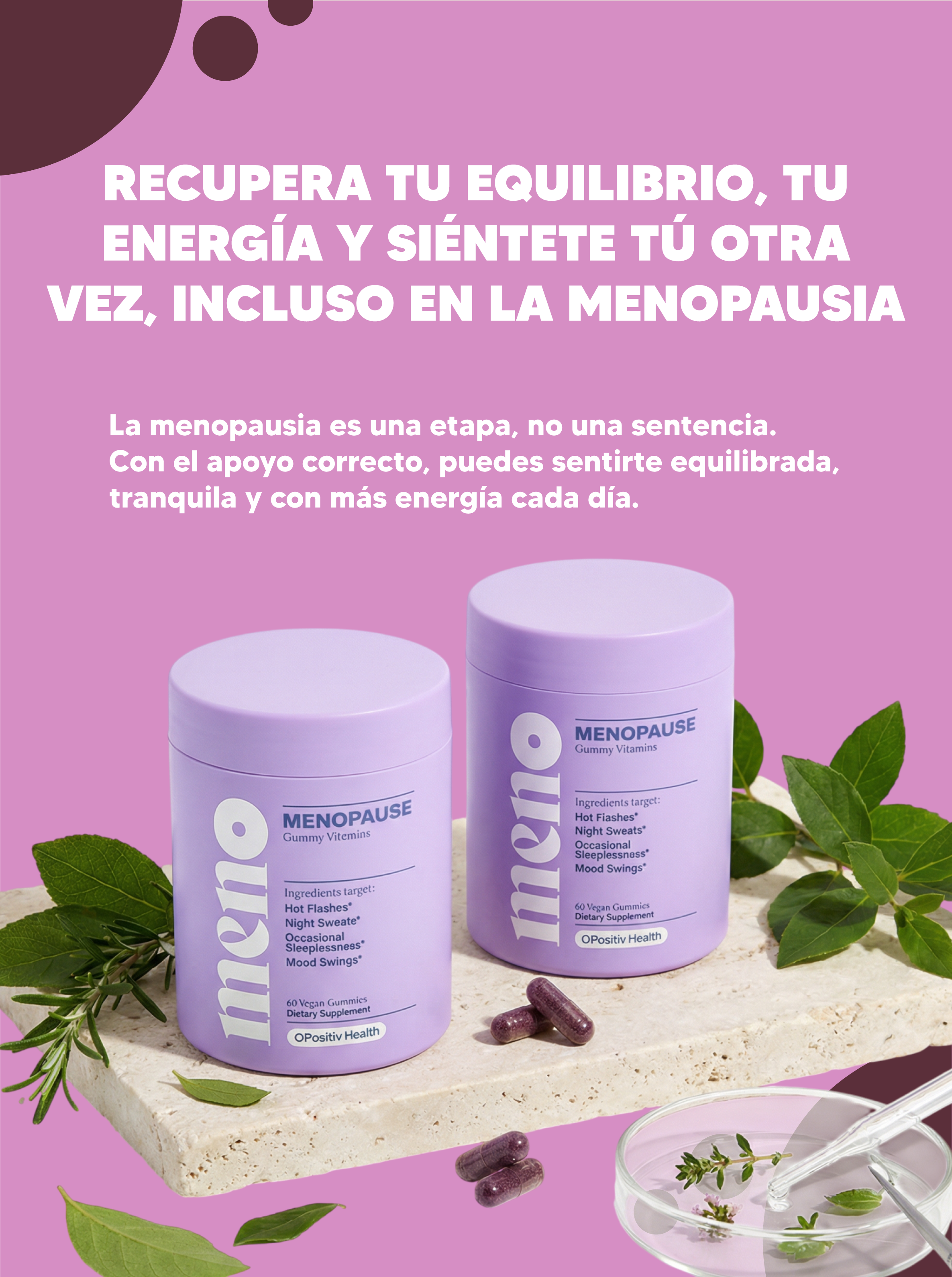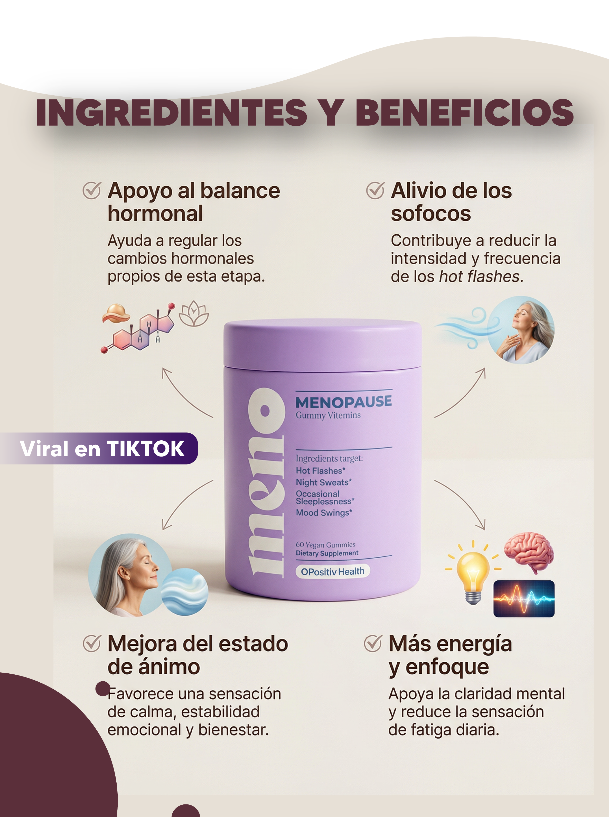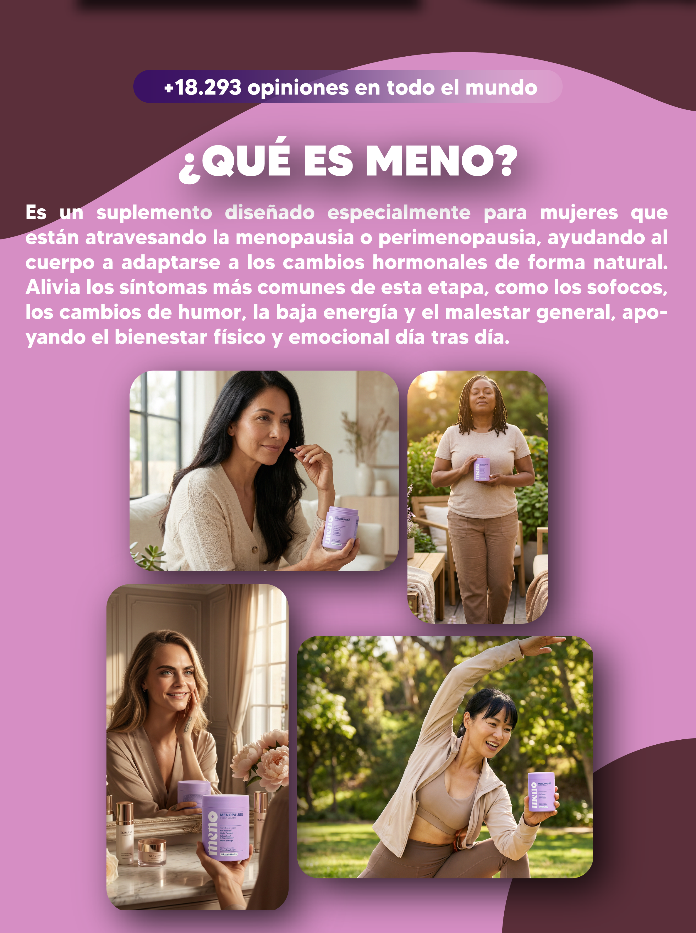 Es un suplemento natural formulado específicamente para aliviar síntomas de menopausia y perimenopausia: bochornos, sudores nocturnos, cambios de humor, insomnio y más.