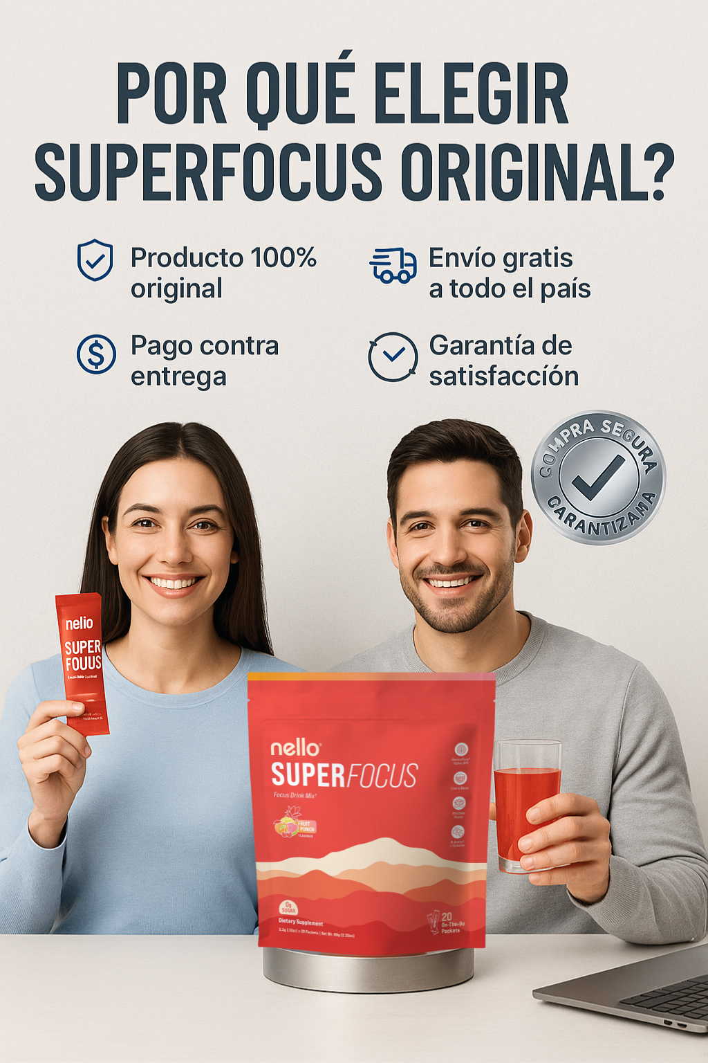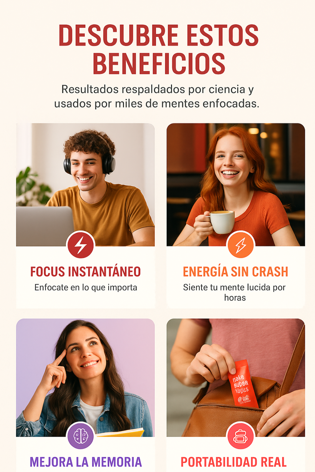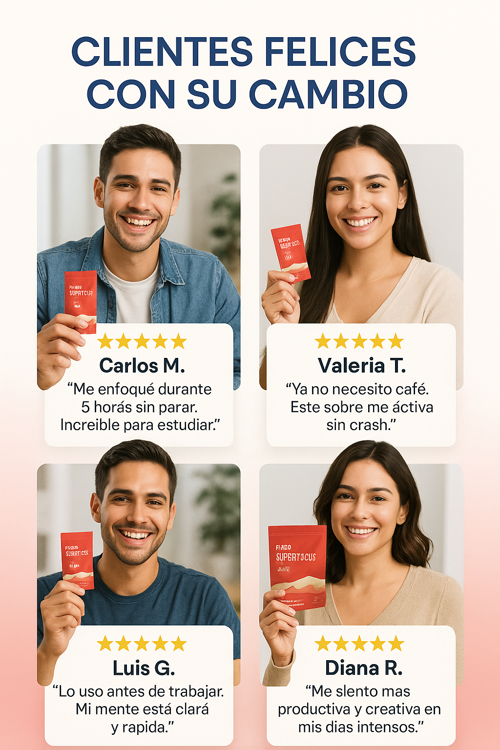 Sí, es 100% seguro. Ingredientes naturales sin efectos adversos. Algunas personas pueden sentir leve aumento de energía.