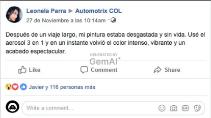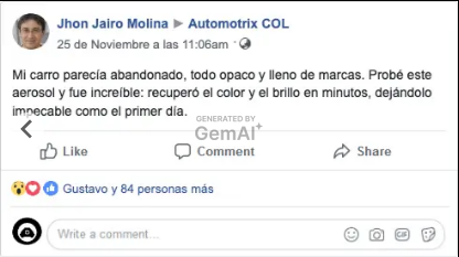 "Siempre batallaba con los rayones leves en mi. camioneta. Desde que uso el aerosol, no solo los oculta, sino que parece recien pintada"