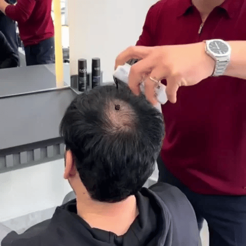 Sujeta el envase a unos 5–10 cm del cabello y aplica en las áreas con menos densidad, entradas o canas. Hazlo de forma suave y controlada.
