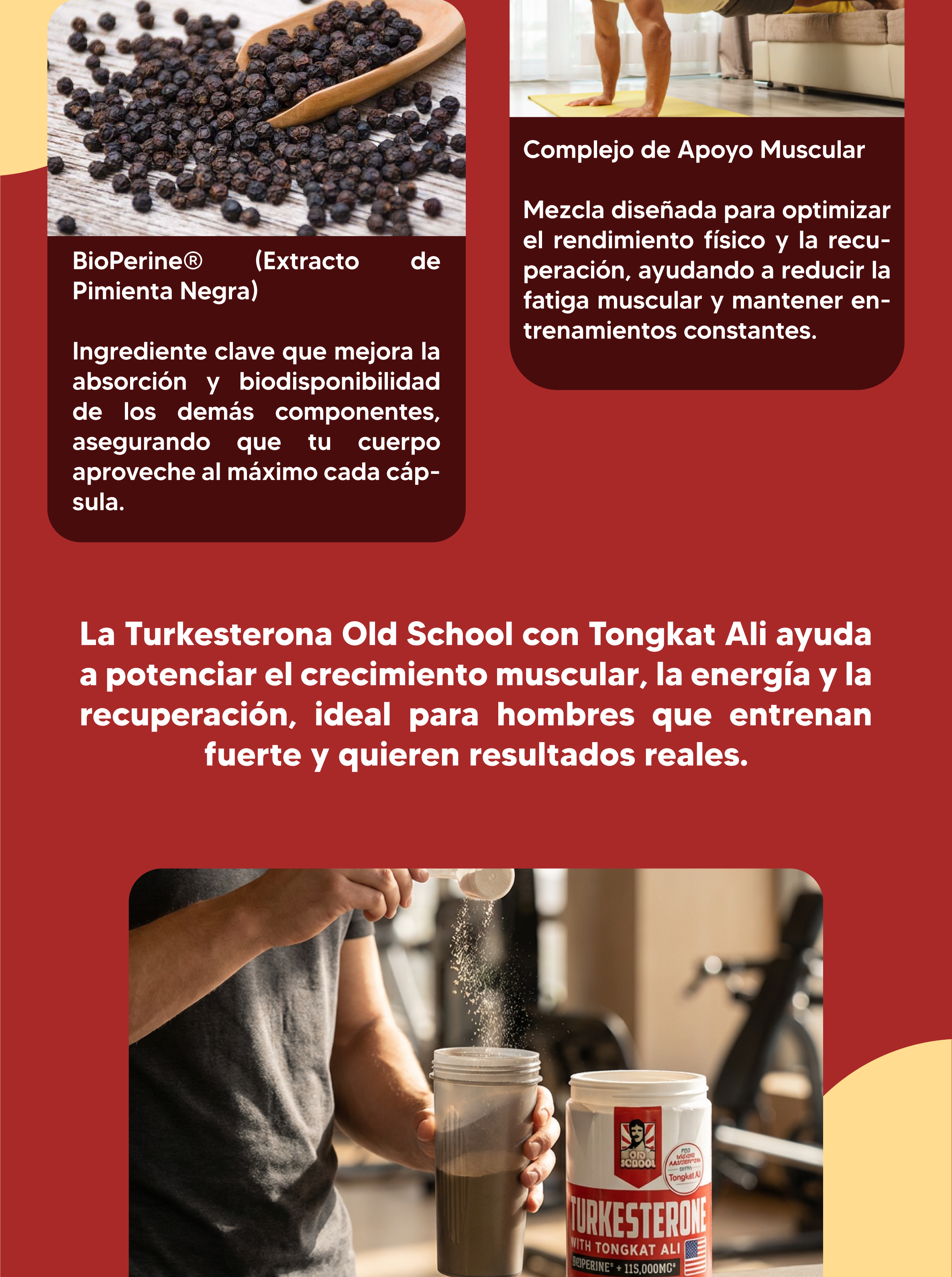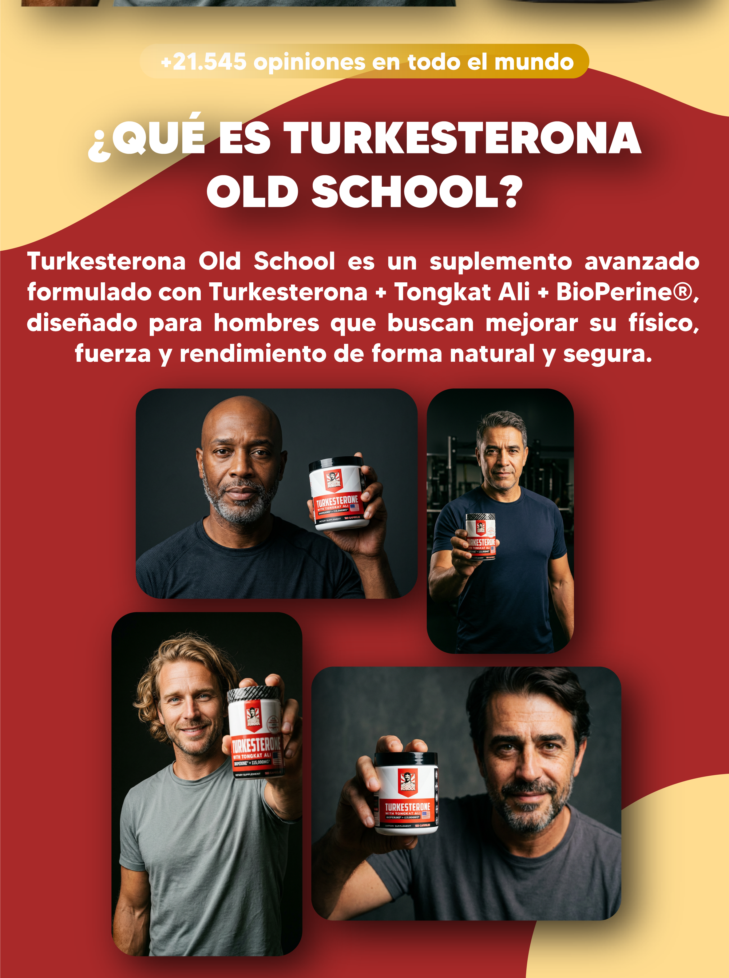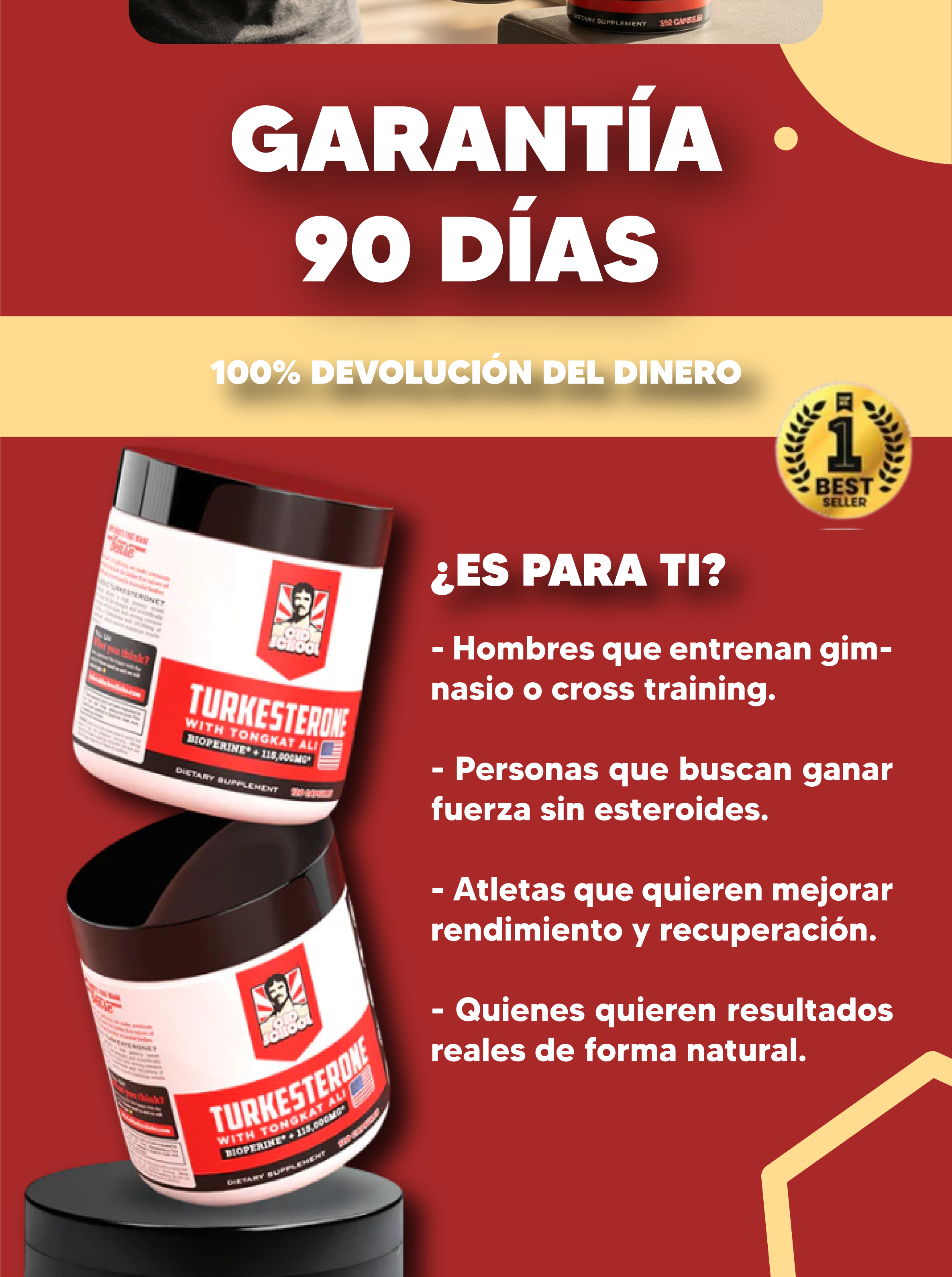 Sí. Se combina excelente con proteína, creatina, pre-entrenamientos. NO combinar con otros boosters de testosterona simultáneamente.