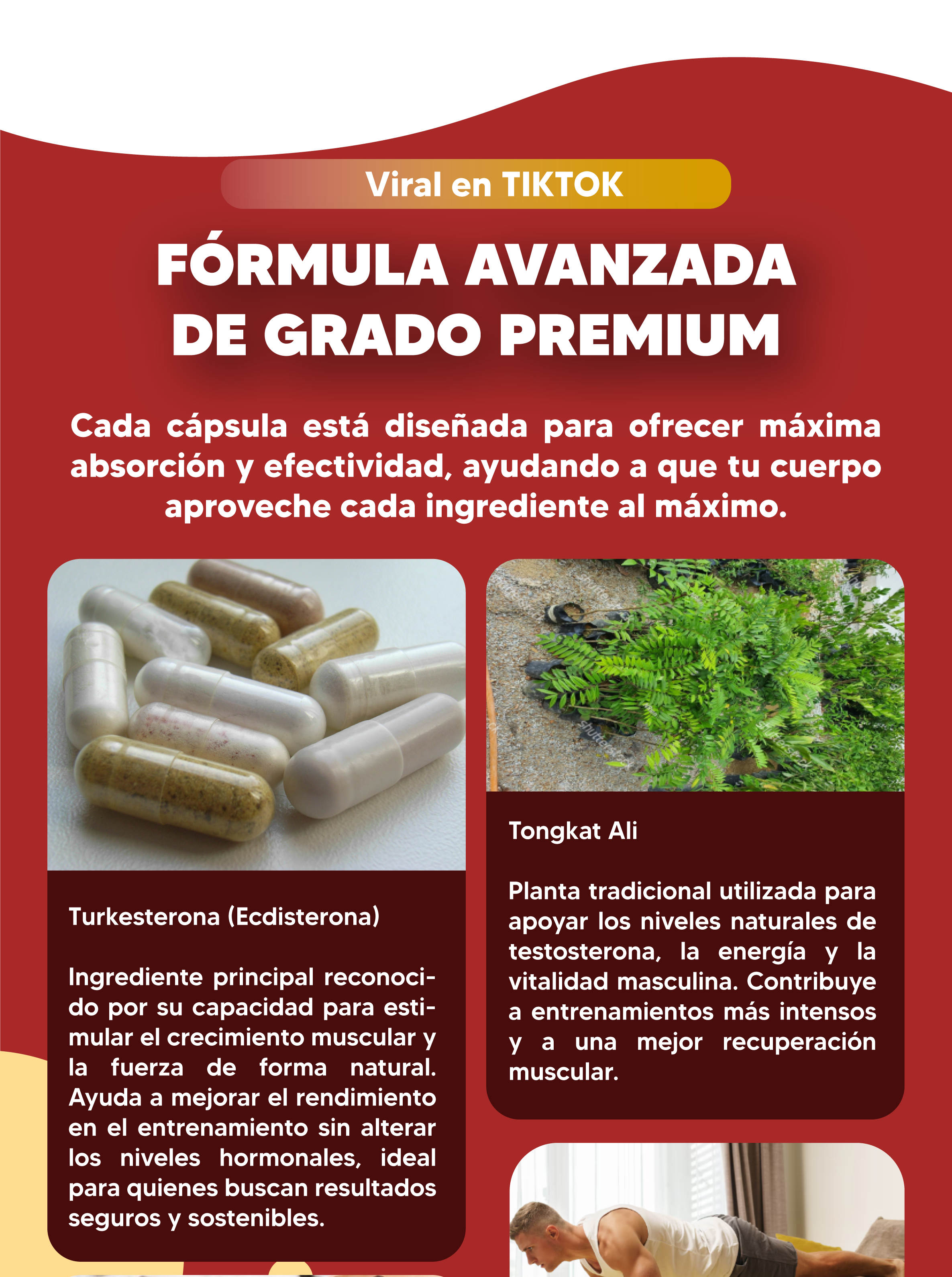 Energía y libido: 7-10 días. Ganancias musculares y fuerza: 2-3 semanas. Resultados óptimos: 4-6 semanas de uso continuo.