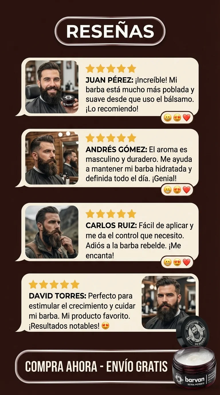 Mi barba tenía huecos y se veía dispareja. Con Barvan ahora se ve más gruesa y uniforme. También me quitó la picazón.