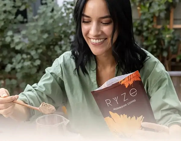 Agrega 1 cucharada (aprox. 5g) de Café Ryze en una taza con 200 ml de agua caliente o leche vegetal.