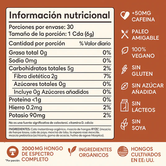 La mezcla con hongos funcionales ayuda a evitar la ansiedad o los picos de energía, brindándote un enfoque estable y duradero.